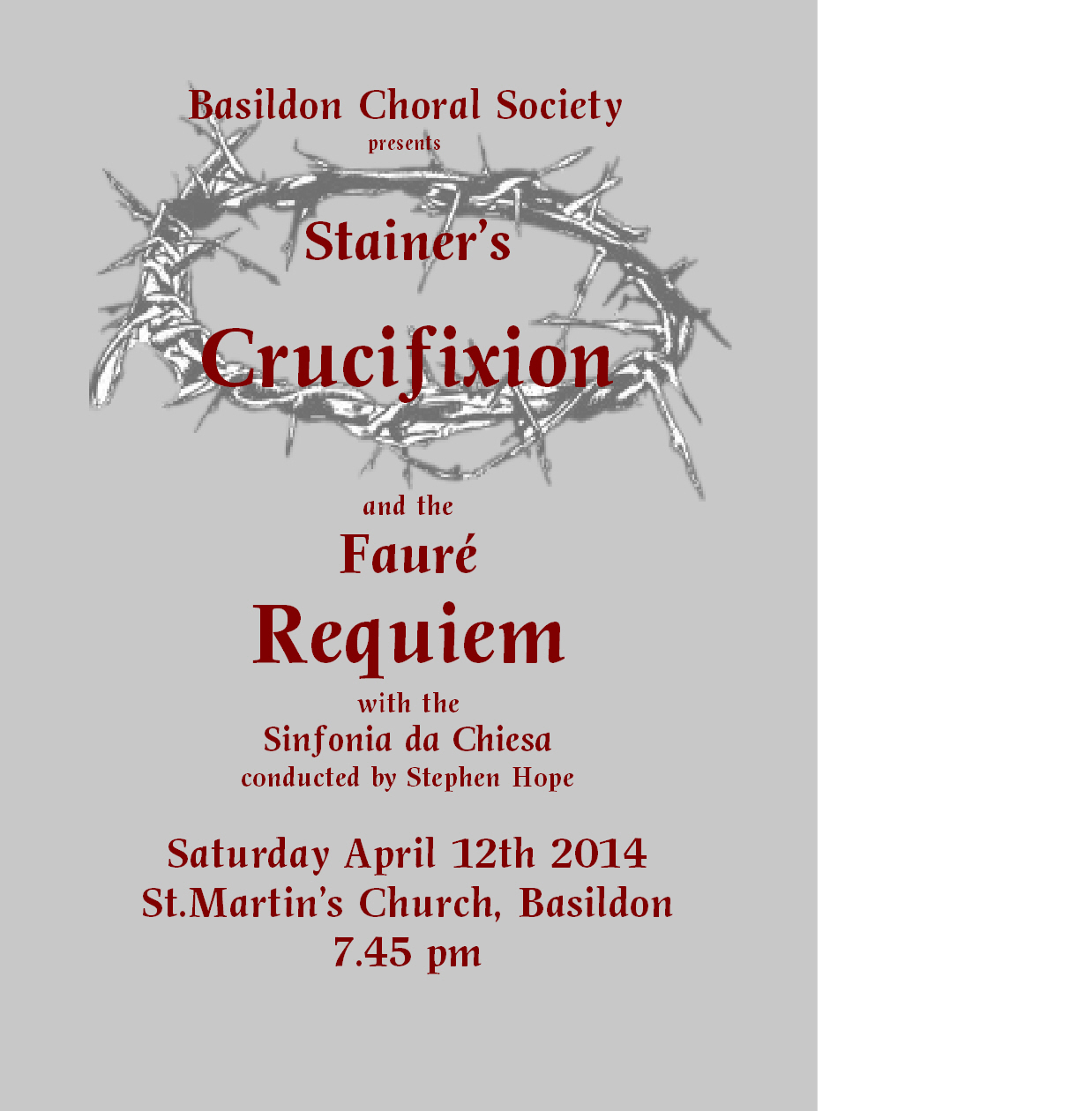 After the success of the Autumn Leaves concert in November, in which BCS performed a mixed bag of modern and traditional folk songs, pop and songs from the shows (Oliver !) the choir is offering traditional choral fare in April. Stainer’s ever popular Crucifixion and the delightful Requiem by Fauré will be accompanied by the Sinfonia da Chiesa under baton of Stephen Hope. Please check later for ticket price.